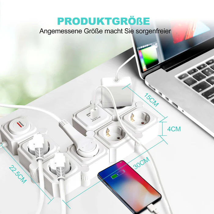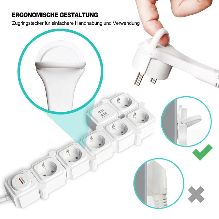 Convenience and Space Efficiency: Not just flexible, this power strip is exceptionally space-efficient. It discreetly fits behind furniture, serves in compact offices, and becomes a handy travel companion. Efficient cable management and optimal use of existing power outlets are its hallmarks.