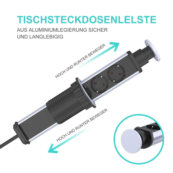 [Innovative Design] Desk power strip for flexible workspace design - Can be lowered into the desk to fit perfectly, saving space and simplifying the organization of your desk.