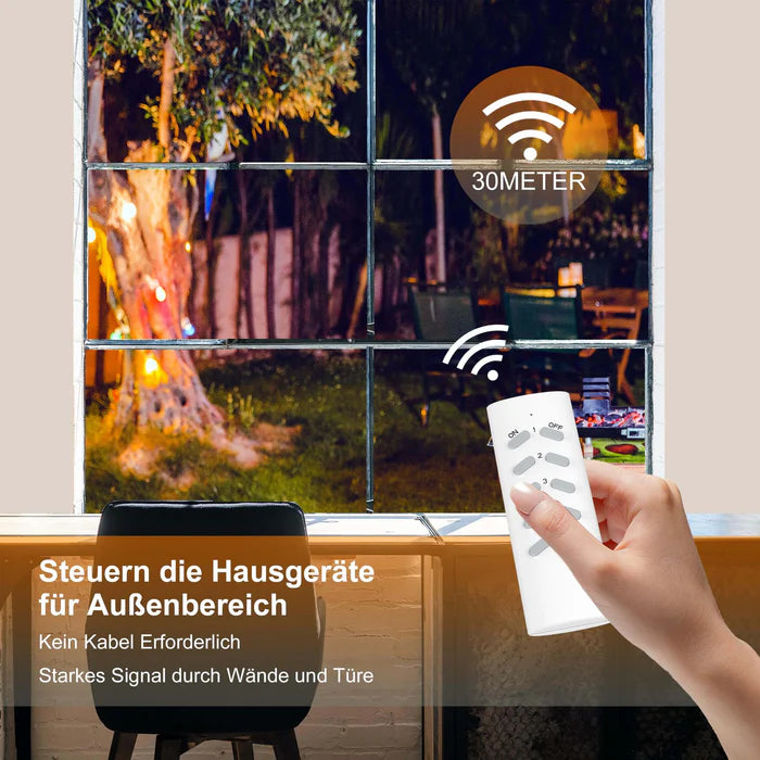 Long-range Remote Control: Enjoy the freedom to control your outdoor devices from a distance of up to 30 meters. The included remote control allows you to easily turn your devices on or off, providing unparalleled convenience.